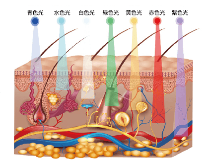 異なる波長の光が肌や頭皮の奥まで届き、